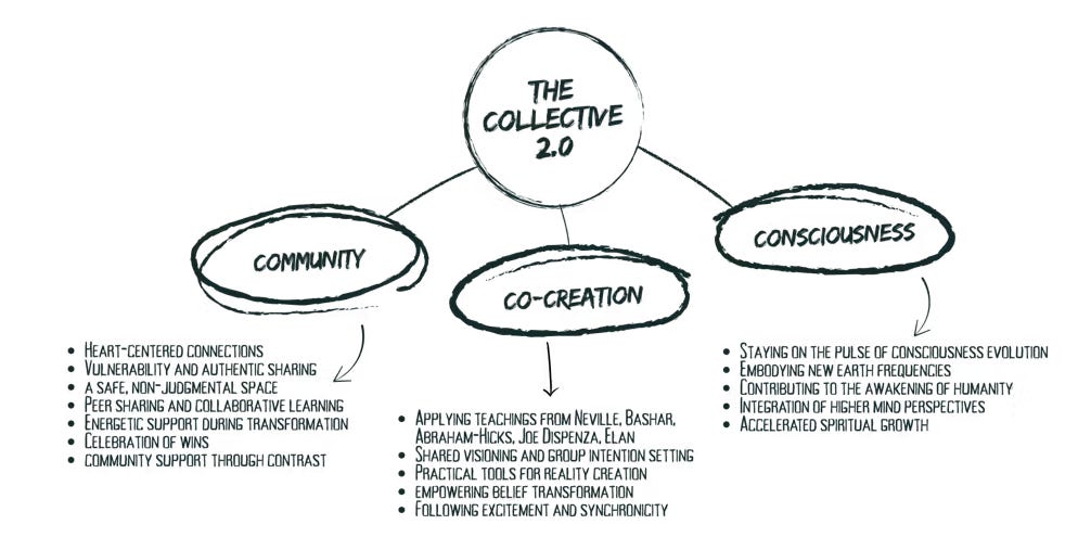 Experience real shifts with our biweekly live calls, daily community support, and practical tools that help your practice stick so you can become your most aligned self and elevate to your highest timeline reality. Join the Collective 2.0 now.
